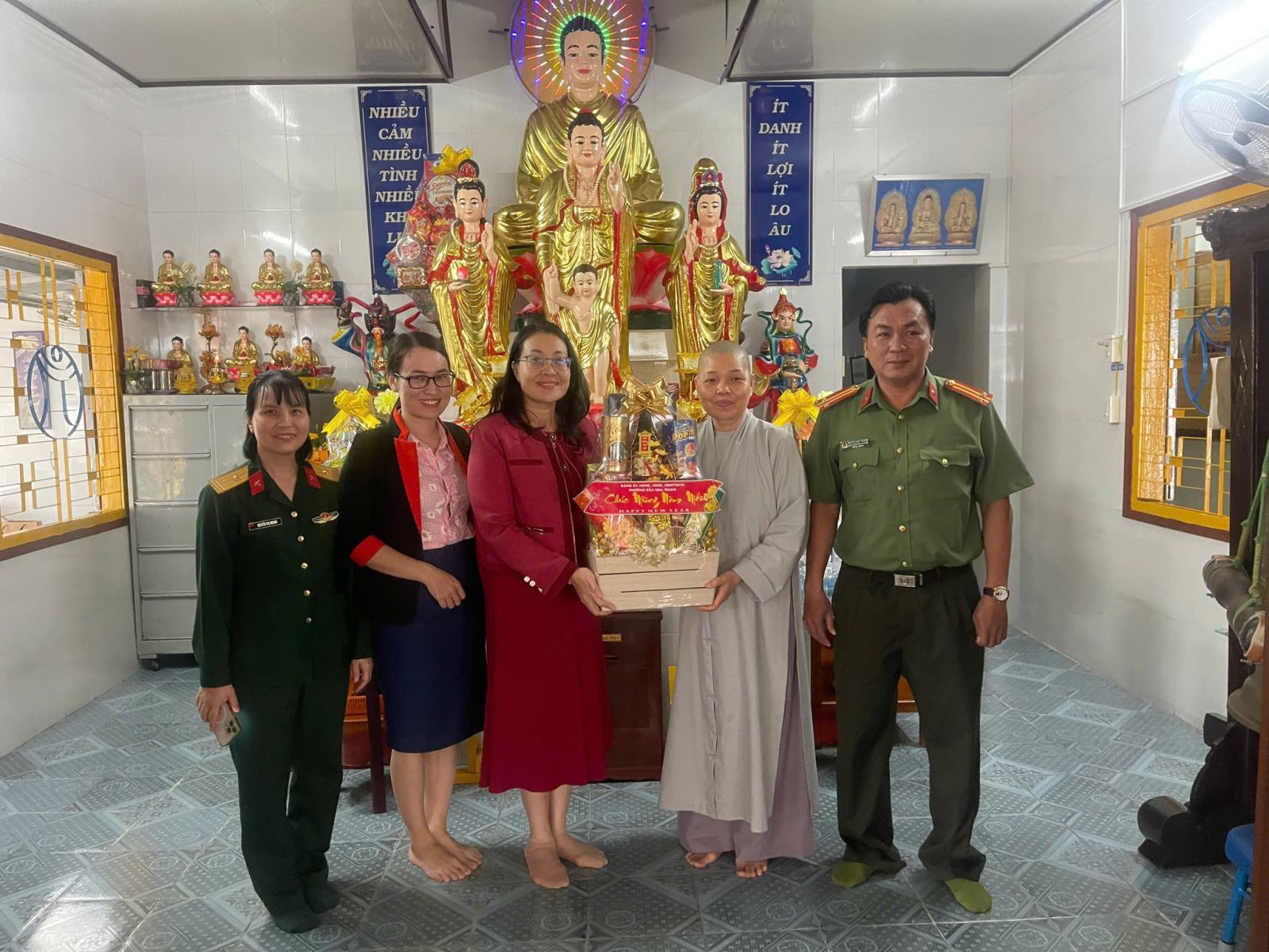 ( Đồng chí Nguyễn Thị Trung Thu - Tỉnh ủy viên, Bí thư Đảng ủy, Chủ tịch HĐND phường thăm tặng quà chùa Hải Quang)