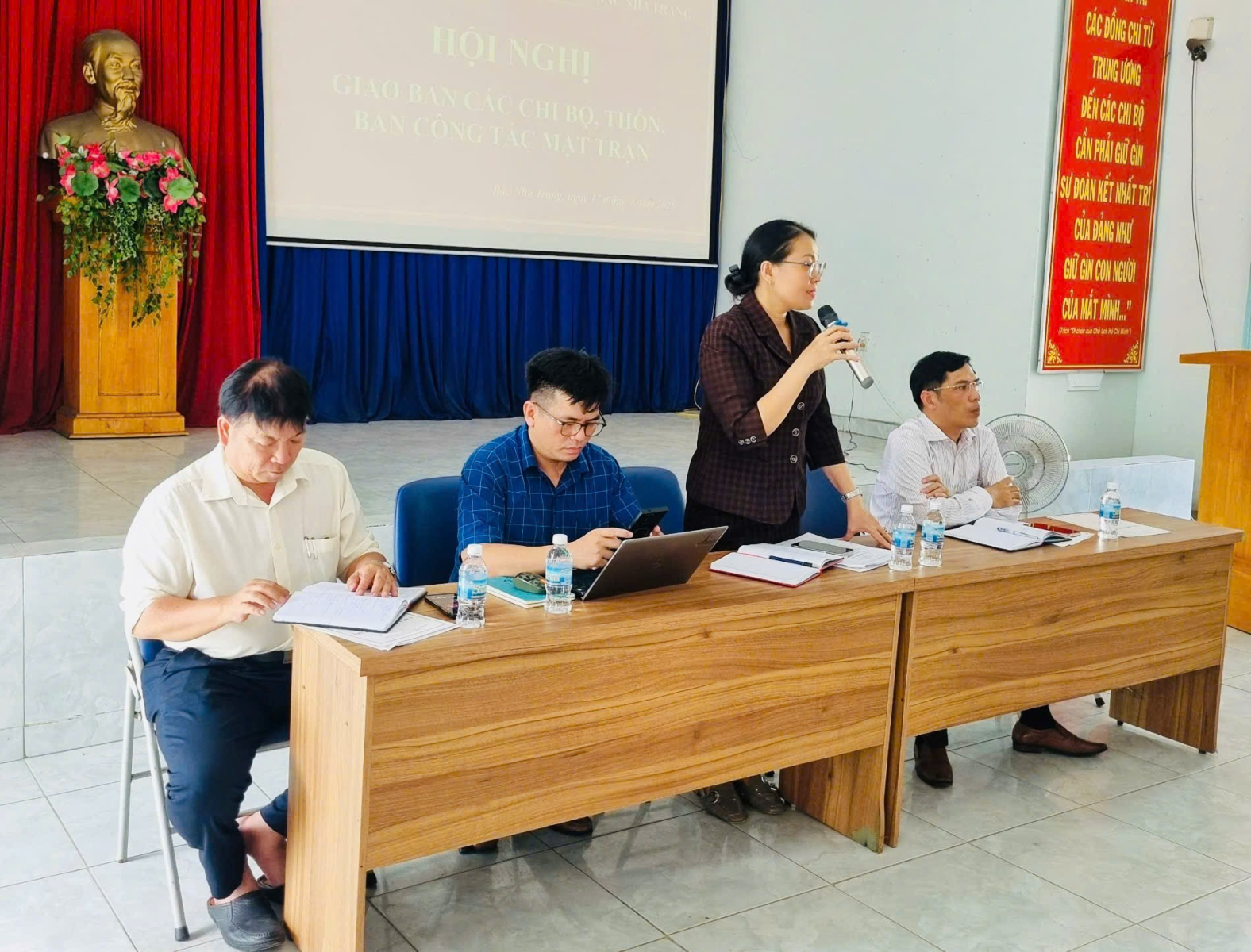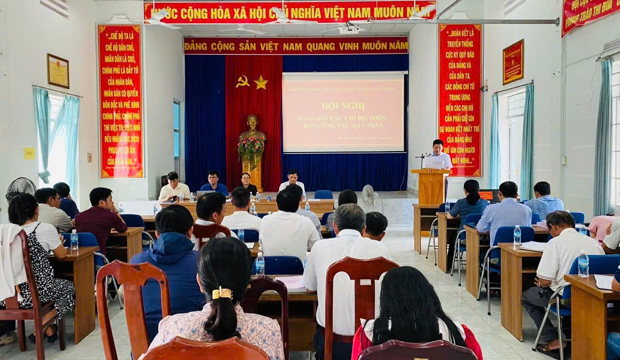 Chiều ngày 17/7/2025, Đảng ủy, HĐND, UBND, UB MTTQVN phường Bắc Nha Trang tổ chức hội nghị giao ban chi bộ, tổ dân phố, Ban công tác Mặt trận các tổ dân phố: Võ Tánh 1, Võ Tánh 2, Lương Sơn 1, Lương Sơn 2, Lương Sơn 3, Văn Đăng 1, Văn Đăng 2, Văn Đăng 3, Lương Hòa và Cát Lợi (xã Vĩnh Lương cũ). Dự hội nghị có các đồng chí: Nguyễn Thị Trung Thu – Tỉnh ủy viên, Bí thư Đảng ủy, Chủ tịch HĐND phường; Đặng Quốc Bảo – Phó bí thư Thường trực Đảng ủy, Chủ nhiệm Ủy Ban Kiểm tra Đảng ủy; Lê Đại Dương – Phó bí thư Đảng ủy, Chủ tịch UBND phường; Trần Hùng Dũng – Chủ tịch UB MTTQVN phường.