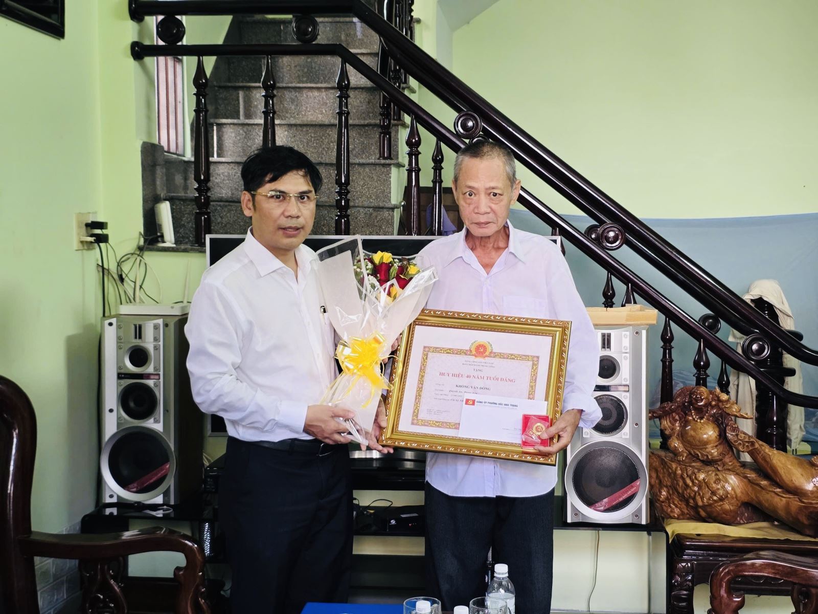 5 đảng viên được trao tặng Huy hiệu Đảng tại nhà, gồm: Đồng chí Võ Thị Hồng Lê (tổ dân phố 4) nhận Huy hiệu 55 tuổi Đảng; đồng chí Hoàng Đăng Chăm (Tổ dân phố 8) nhận Huy hiệu 45 tuổi Đảng; đồng chí Bùi Tam Động (Tổ dân phố 13 Đường Đệ) nhận Huy hiệu 45 năm tuổi Đảng; đồng chí Khổng Văn Đồng (Tổ dân phố 13 Đường Đệ) nhận Huy hiệu 40 năm tuổi Đảng và đồng chí Phan Quốc Linh (Tổ dân phố 8) nhận Huy hiệu 30 tuổi Đảng.