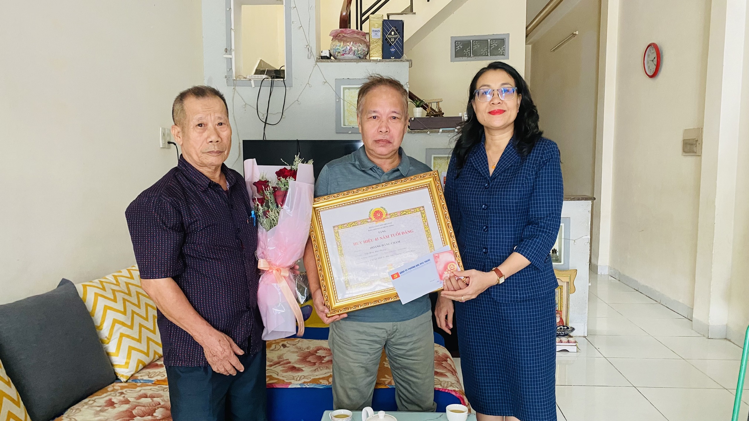 Nhân kỷ niệm 80 năm Cách mạng tháng Tám thành công (19-8-1945 - 19-8-2025) và Quốc khánh nước Cộng hòa xã hội chủ nghĩa Việt Nam (2-9-1945 - 2-9-2025). Chiều ngày 28/8, đồng chí Nguyễn Thị Trung Thu – Tỉnh ủy viên, Bí thư Đảng ủy, Chủ tịch HĐND phường Bắc Nha Trang và đồng chí Đặng Quốc Bảo - Phó bí thư Thường trực Đảng ủy, Chủ nhiệm Ủy ban Kiểm tra Đảng ủy phường Bắc Nha Trang đã đến thăm và trao Huy hiệu Đảng tại nhà cho 5 đảng viên sức khỏe yếu.